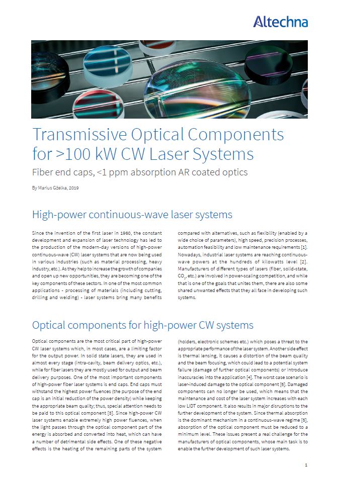 Low absorbtion transmissive optics for CW applications 페이지 정보 작성자 admin 조회 10,345회 작성일 20-03-16 09:47 본문 첨부파일 Ultra Low absorption AR coated optical components.pdf (500.8K) 190회 다운로드 | DATE : 2020-03-16 09:47:47 목록 이전글Ophir, Beam profile,sensor 제품 Catalog 20.03.17 다음글[Official] Uniotech Catalog 20.02.12